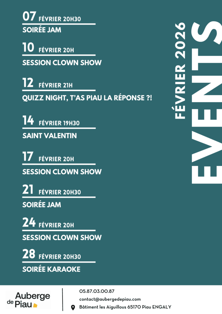 Throughout the winter, the Auberge de Piau offers a varied programme: live concerts, jam sessions, festive dinners, family entertainment, and more.