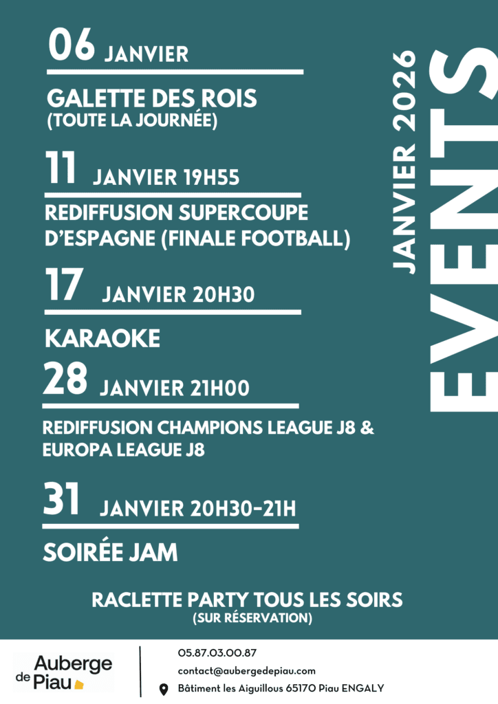 Tout au long de l’hiver, l’Auberge de Piau propose une programmation variée : concerts live, soirées jam, dîners festifs, animations familiales… Un lieu convivial où l’on se retrouve après une journée sur les pistes pour partager un moment chaleureux. Découvrez l’agenda complet de nos événements.